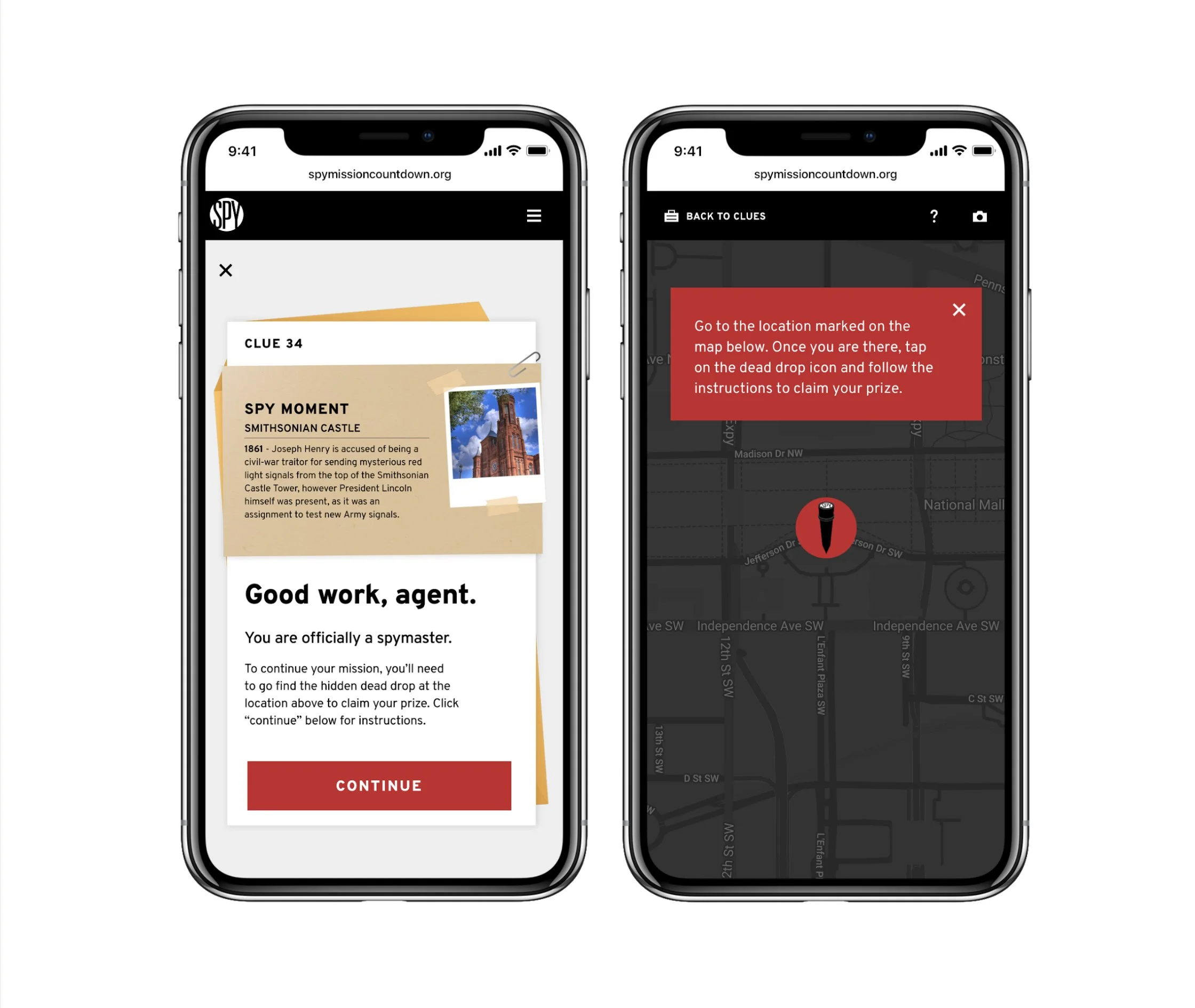 Leading up to the opening of the museum we wanted to engage fans by actually putting them into the shoes of a spy. We recruited local agents to crack clues in order to find physical and digital dead drops hidden in the Washington DC area, and claim secret prizes. Each dead drop was hidden at a famous spy site, from hotels where clandestine meetings occurred to parks where actual dead drops were left by real spies. The clues and locations represented moments in local spy history, from 1777 up to the opening of the new Spy Museum on 5-12-2019.